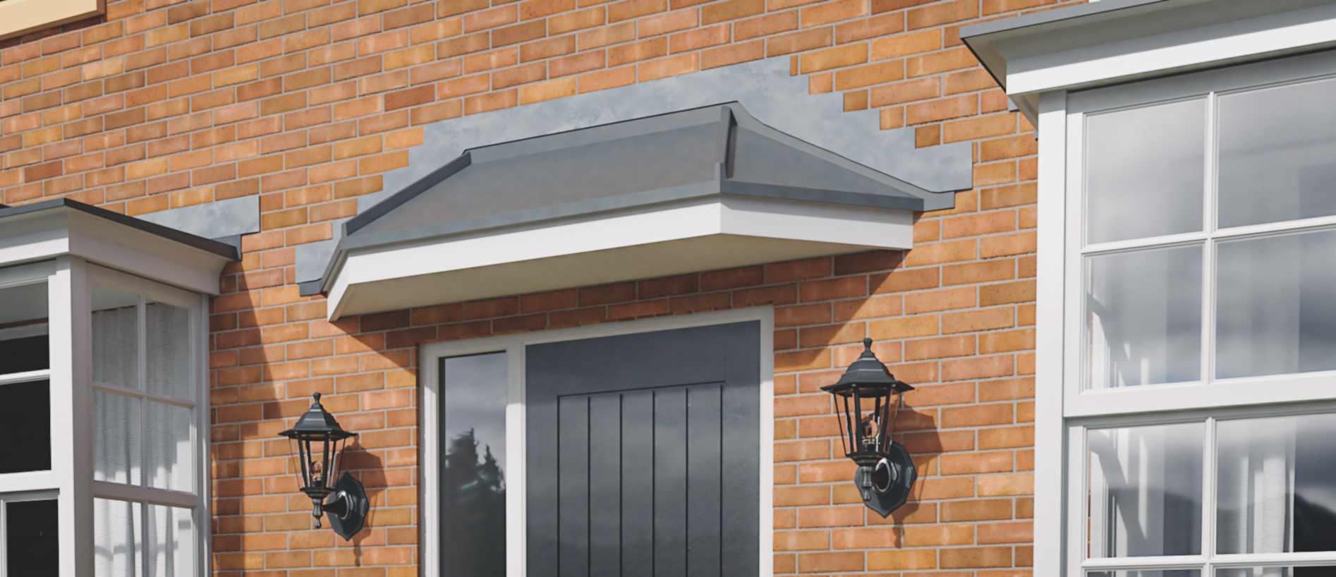 All Pitched Entrance Canopies are available with Lead Effect roofs that come in ‘Slate Grey’.